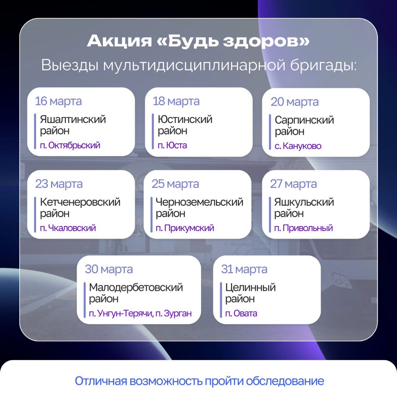Мультидисциплинарная медицинская бригада продолжает выезды по Калмыкии в рамках акции «Будь здоров».